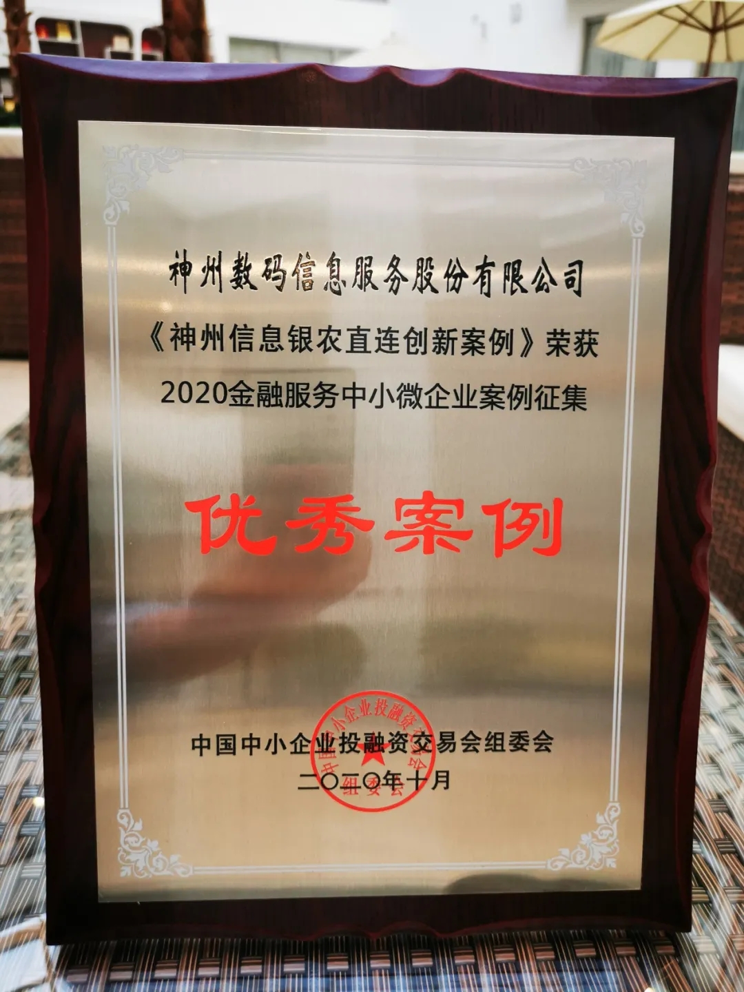 近日,在中国中小企业协会和中国银行业协会联合开展的2020年度“金融服务中小微企业”案例征集活动中,神州信息报送的“银农直连推动金融服务三农,助力乡村振兴创新案例”脱颖而出,荣获2020“金融服务中小微企业优秀案例”,并在第八届中国中小企业投融资交易会开幕仪式上发布。