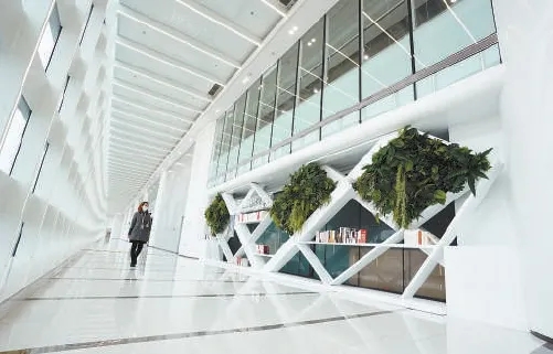 “怀旧”为的是更好地向前看。二层150米双层挑高景观文化长廊,气势恢宏。外边是北京动物园,可以欣赏四季景观。屋顶采用全玻璃吊顶,夜间照明时有银河的感觉。长廊计划长期进行文化艺术品布展,将被打造为金融科技与文化艺术结合的休闲场所。
