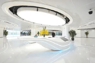 走进大厅,最直接的感受是敞亮、通畅。白色的内侧立面简约时尚。地上9层、地下2层让该中心区域功能明确。首层及地下一层为地铁与公交换乘枢纽,地下二层为智慧停车场。二层至顶层为办公及商业配套,面积约6万平方米。