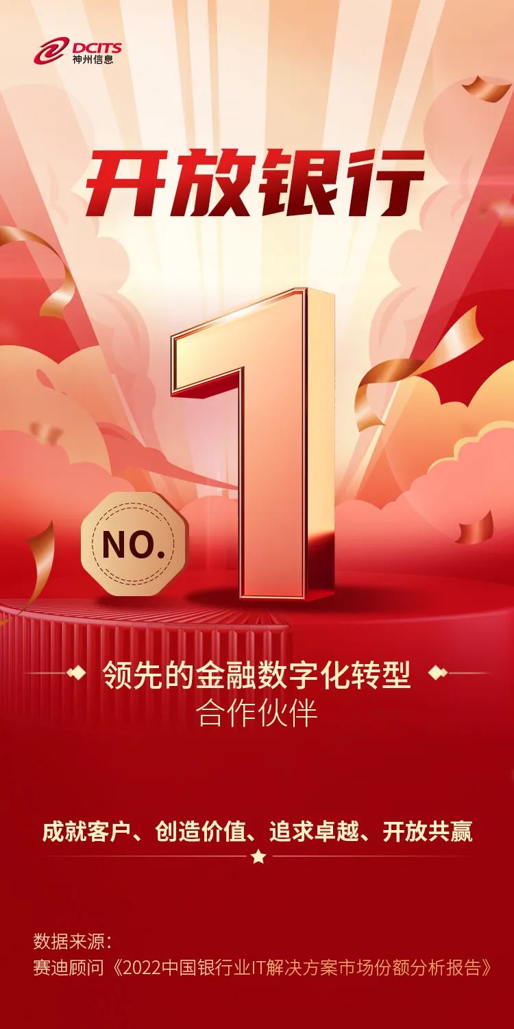 赛迪顾问在报告中表示,开放银行是银行数字化转型的必经之路。开放银行通过数字技术实现金融产品和服务的融合,同时构建数字金融生态,满足客户个性化、场景化的金融需求。在2022年开放银行解决方案市场上,神州信息继续蝉联市场第一名。