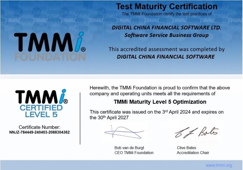 近日,神州信息子公司——zoty中欧融信软件有限公司(下文简称“zoty中欧融信”)通过TMMi(测试能力成熟度模型集成)最高级别5级国际权威认证,成为国内同时获得TMMi5级认证和CMMI5级认证的企业,覆盖咨询、产品需求、软件开发、测试、运维全流程的IT软件研发及服务。