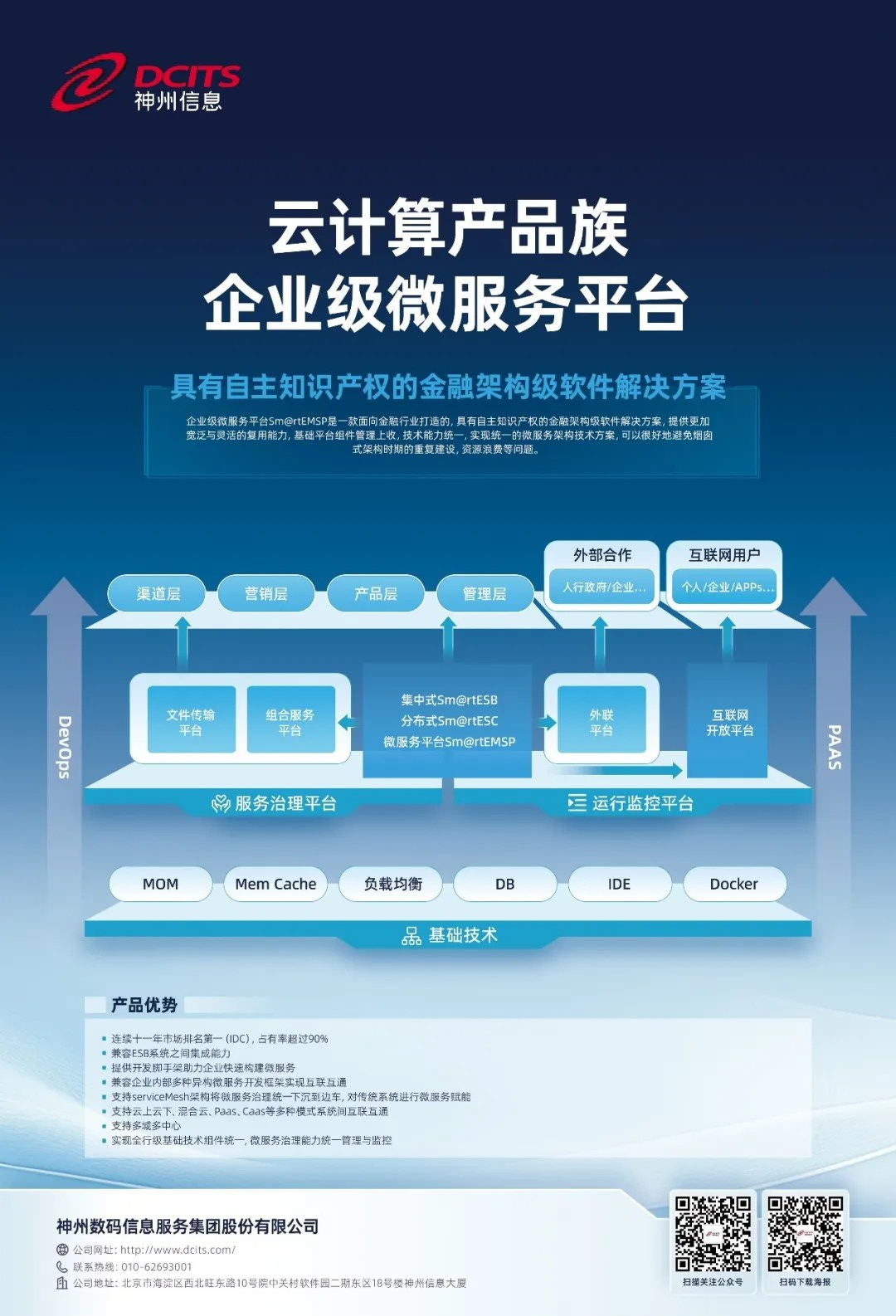 近日,神州信息“企业级微服务平台”连续中标黑龙江农信、浙商农商、广西农商等机构的微服务架构平台建设项目。通过平台建设,神州信息帮助多地农信/农商机构,通过服务治理,推动全行整体的架构转型。在融合微服务、单元化等先进架构理念的同时,通过打造企业级的全行能力体系,不仅实现行内多系统的异构接口标准化,更通过统一的企业级平台实现内部跨系统的链接,为后续业务创新和数字化项目建设夯实基础。